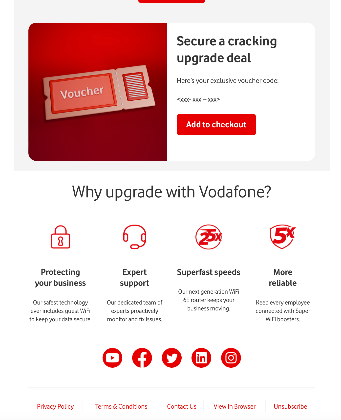 Creating Vodafone emails and DMs. Making various assets that include 3d models, illustrations, animating the headers and retouching images.